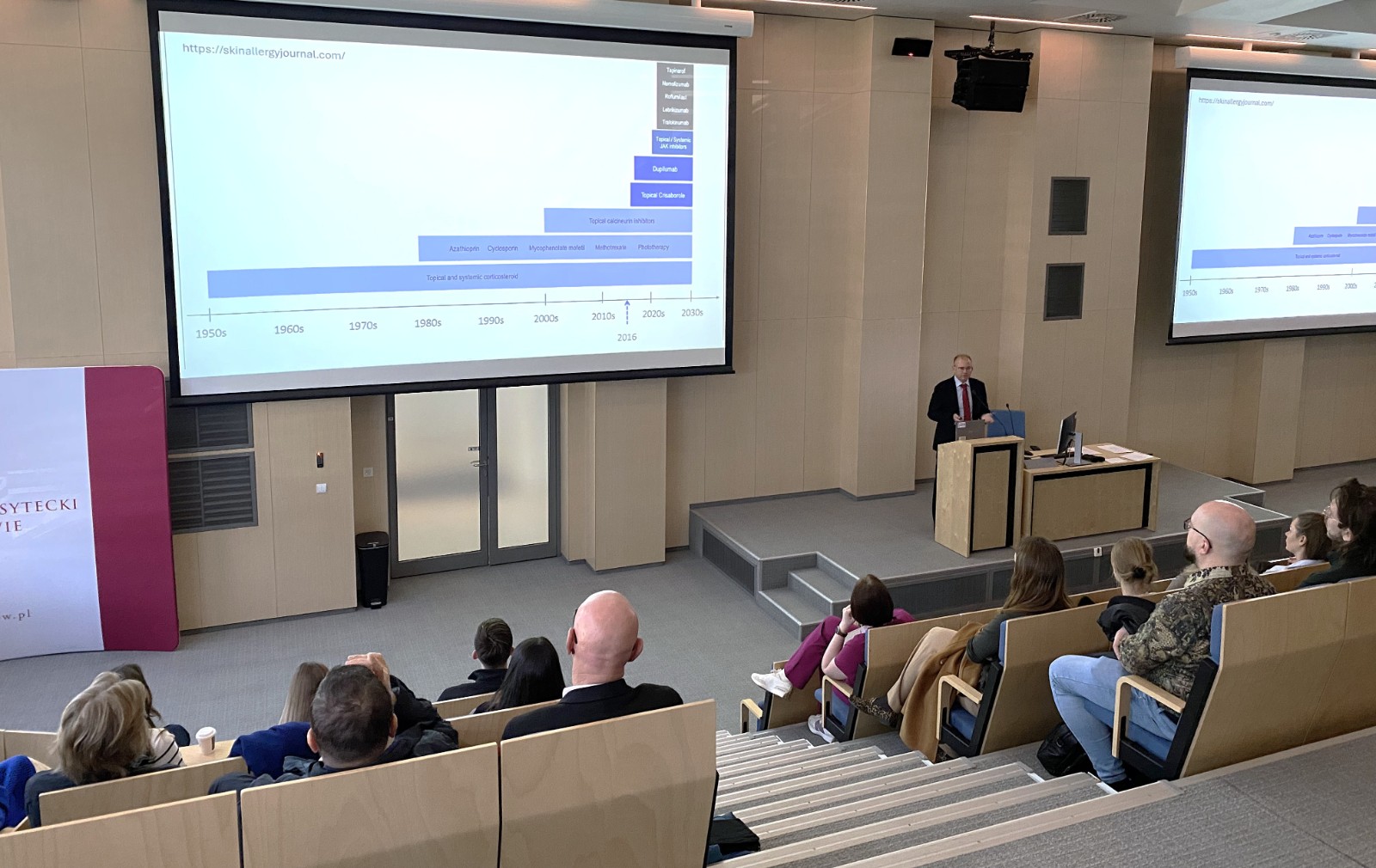 - Szpital Uniwersytecki w Krakowie po raz kolejny udowadnia, że podąża za najnowszymi trendami i aktualną literaturą medyczną, a jednocześnie kształci najwyższej klasy młodą kadrę medyczną – tymi słowami dr hab. Marcin Krzanowski, zastępca dyrektora ds. lecznictwa powitał uczestników konferencji „Interdyscyplinarne spojrzenie na inhibitory kinaz janusowych”.
